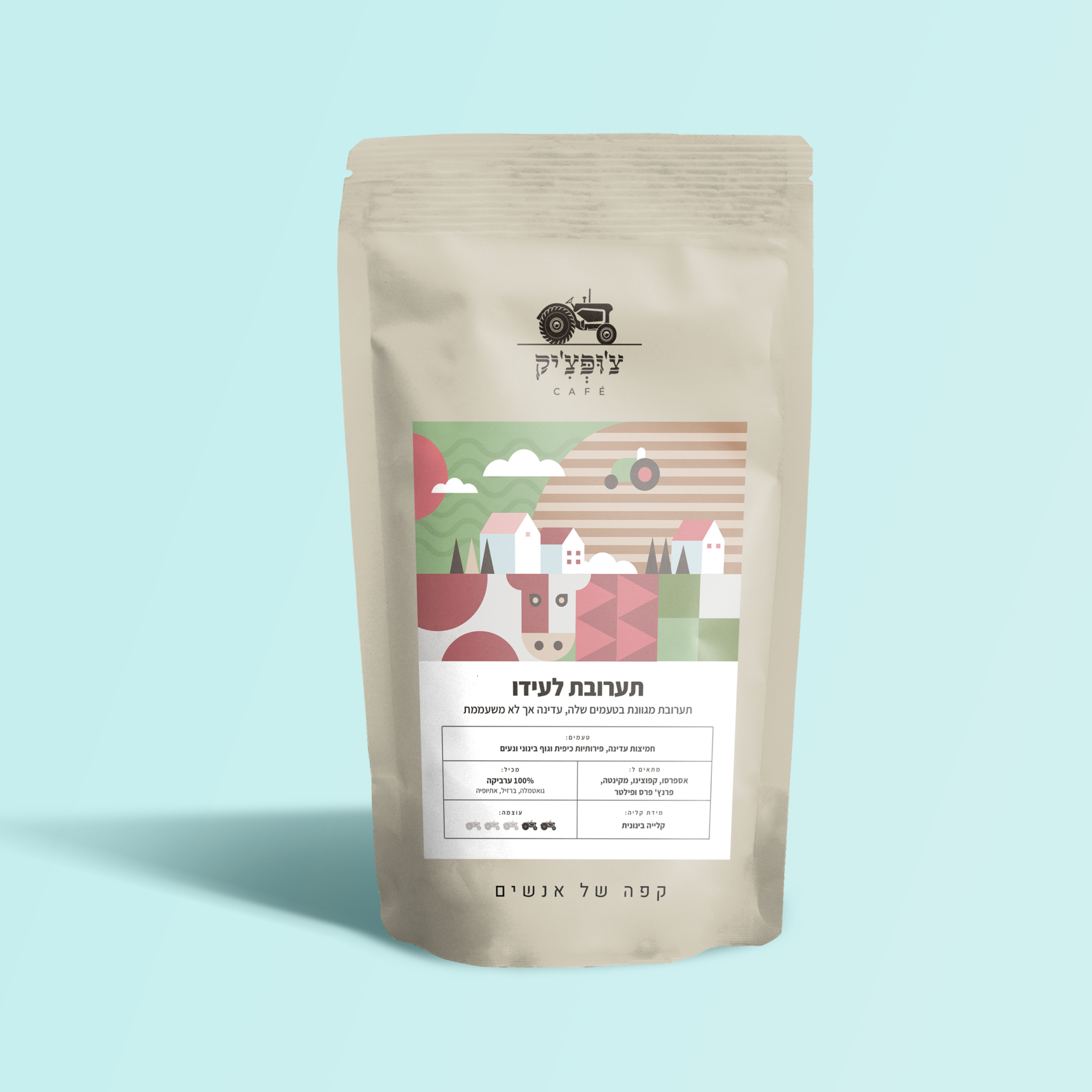 3 סוגי ערביקה – גואטמלה, ברזיל ואתיופיה. תערובת עדינה ומאוזנת מאוד. קלייה בינונית ששומרת על טעמי פרי נפלאים ומייצרת לתערובת הזו גוף רך ונעים. עומק הטעמים והאיזון כאן מתאפשרים רק בזכות חומרי גלם מעולים ומעט מאוד מניפולציות בשלבי העיבוד והקלייה.